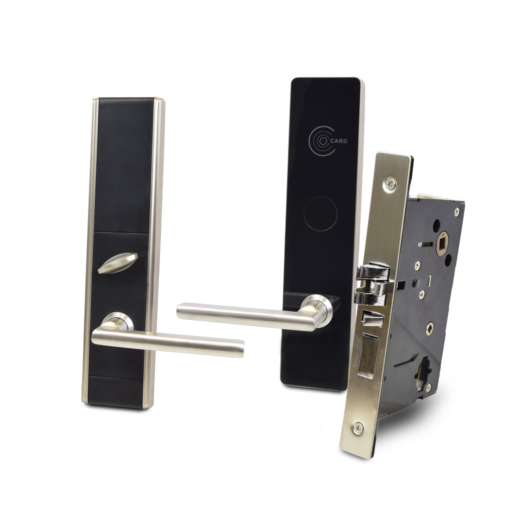 Електронний замок LH6800 right (для правих дверей) для готелів зі зчитувачем RFID карт Mifare для обмеження доступу сторонніх осіб у номери і службові приміщення готелю. Замок сумісний із USB зчитувачем ZKTeco CR60WБренд: ZKTeco.Функціонал - підтримка стандарту карт Mifare-1 - американський стандарт з 5 защіпками - професійне ПЗ для готелів для керування доступом - журнал подій на 224 записи - попередження звуковим сигналом про низький заряд батареїТехнічні характеристики LH6800 rightТип карт: Mifare 13.56 МГц ISO14443 (RFID) Type-A, S70 4KB / S50 1KBЖивлення: 4*AA батареї (не входять у комплект)Товщина дверей: 35-55 ммТип дверей: правіМатеріал: цинковий сплавРобоча температура: 0°C - +45°CРозміри: 298 х 70 х 90 мм