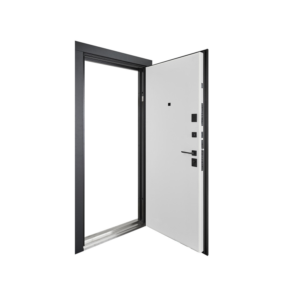 Дверне полотно виготовляється з металу 1,5 мм та укомплектовано двома МДФ накладками товщиною 16 мм ззовні та 10 мм всередині, що надає високий рівень тепло- та звукоізоляції.